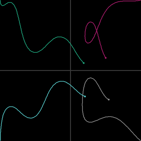 RANDOM chooses a random function for the leader to follow, and is best used with SHOW-LEADER? and SHOW-TRAIL? turned off so that the function can be guessed based on the movements of the followers.