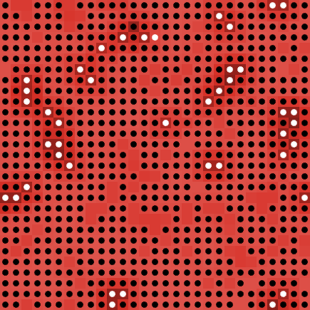 SHOW-TEMP-MAP? shows a color map of temperature at each patch. Light red represents hotter temperatures, and darker red represents colder temperatures.