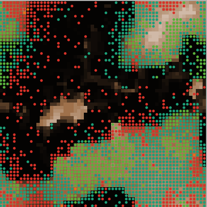 set pcolor scale-color brown resource 0 (Tragfähigkeit + 30) ]