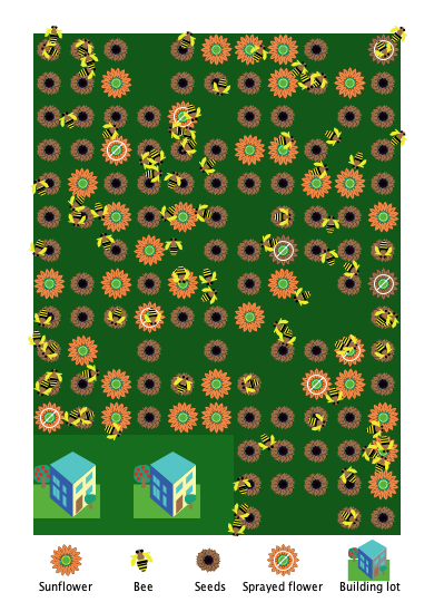 There are two types of agents: bees and sunflowers.