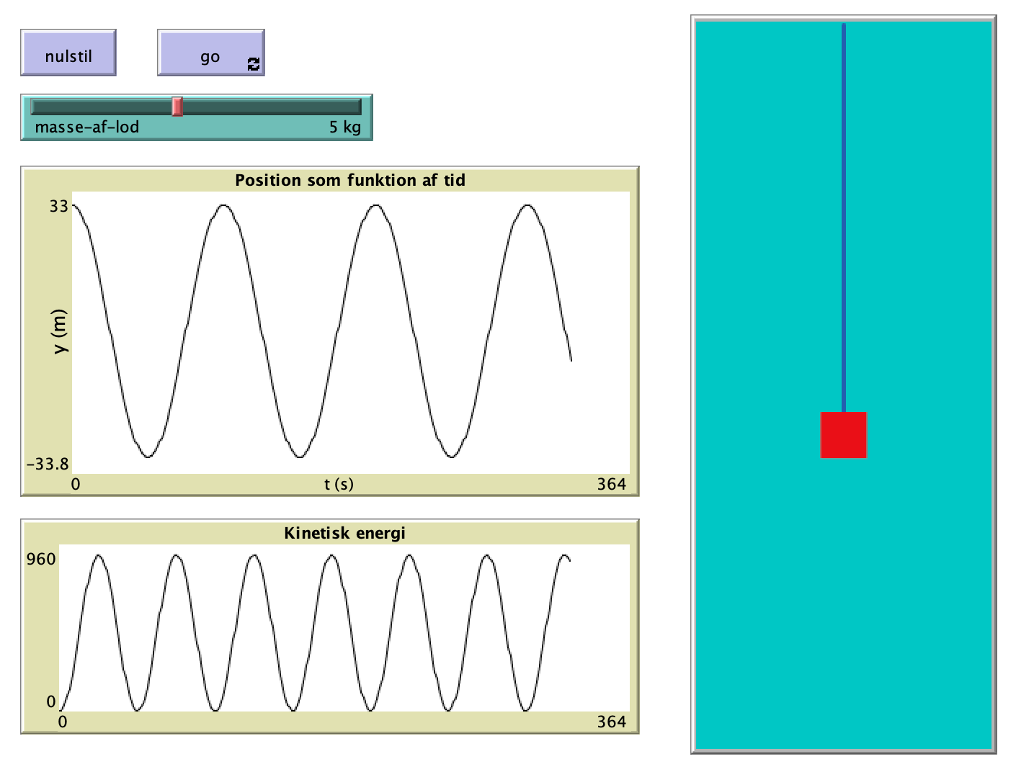 Der er mulighed for at tilføje tegnet grafer over kinetisk, potentiel og mekanisk energi, og derved studere energiforhold for fjederen.